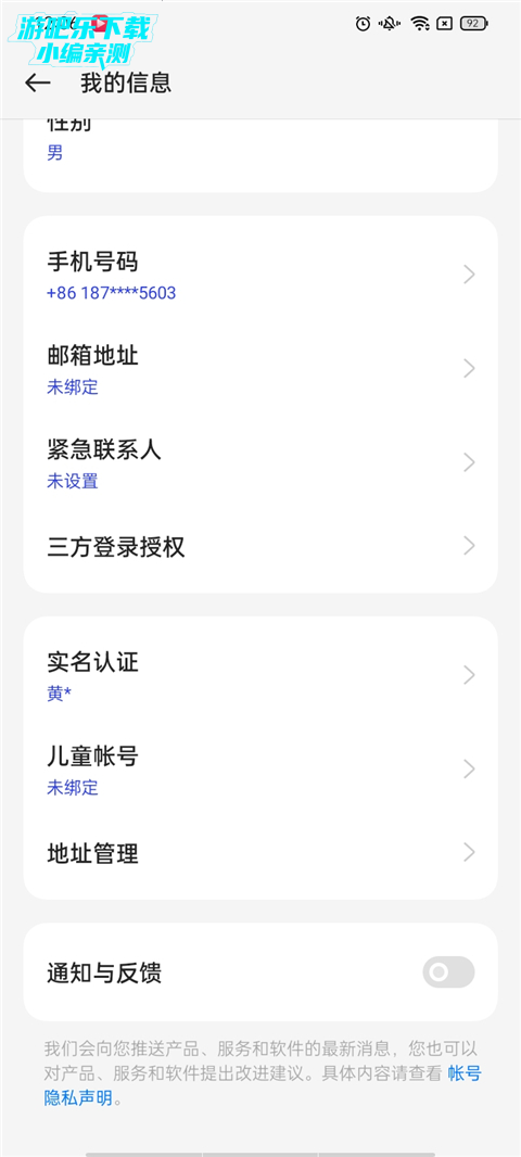 3、点击我的信息,在这里我们就可以看见实名认证选项;