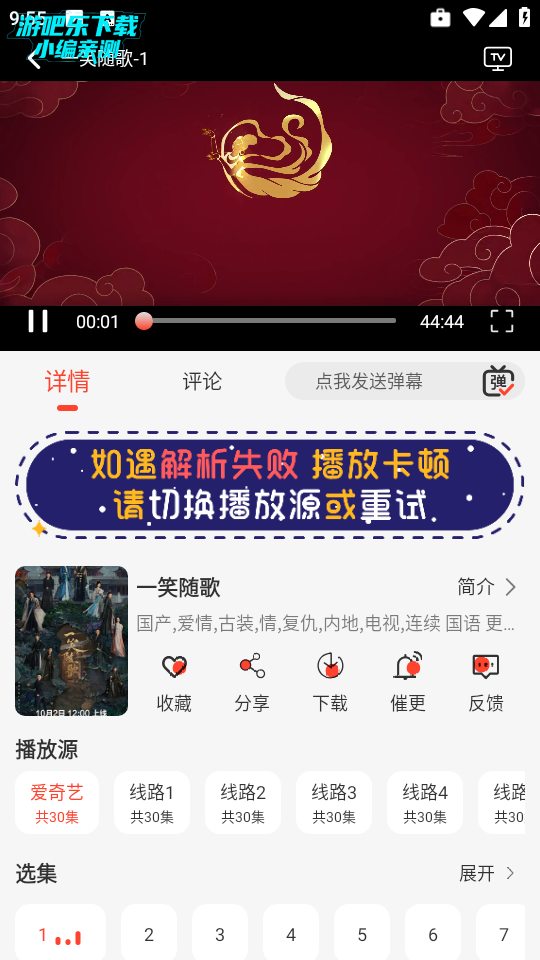2、接着找到播放界面的【下载】按钮,自定义选择下载集数。
