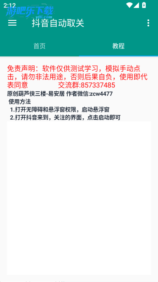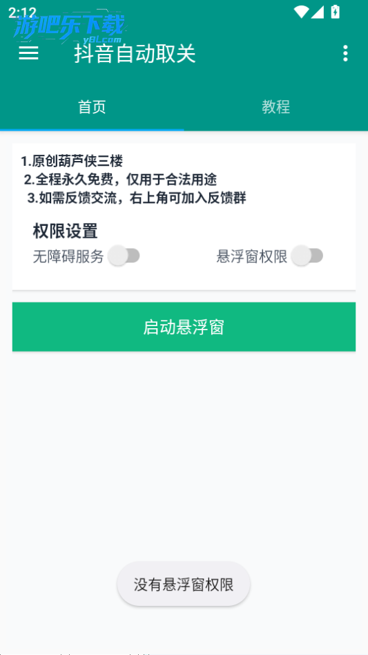 下载进入葫芦侠抖音取关软件,首先开启无障碍服务和悬浮窗权限