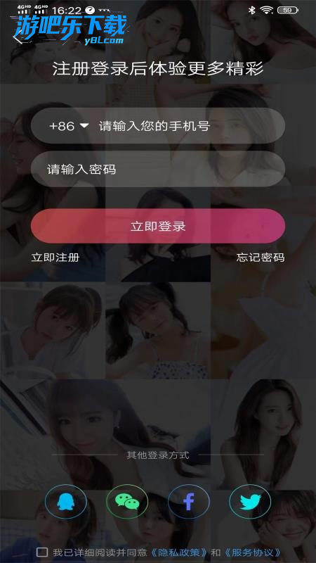 1、在游吧乐下载安装软件,点击同意服务协议和隐私政策