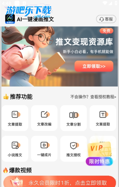 下载进入ai一键漫画推文软件,这里有超多的功能可以选择使用