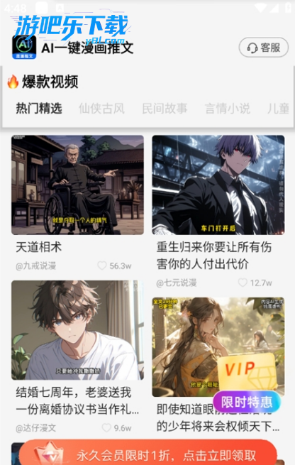 - 一直苦于没有好的创意将小说变现,AI一键漫画推文彻底解决了我的难题。各种爆款视频同款模板给我提供了大量灵感,一键生成功能让我能快速尝试不同风格,极大地激发了我的创作热情。现在我的账号内容丰富多了!