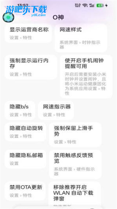 - O神模块不断进化,这次更新解决了之前的一些问题,并增加了新的实用功能。硬件指示器经过重构后更加稳定,CPU频率和内存占用显示信息一目了然。对于追求极致性能的一加、真我和OPPO用户来说,O神是一个不错的选择。