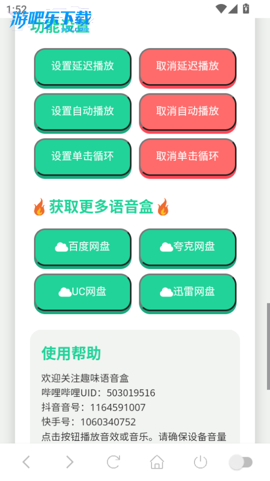 - 作为一款娱乐性App,没出息语音盒做得非常出色。内置的语音资源丰富多样,而且支持延迟播放和循环,个性化设置很贴心。不仅可以自定义,还能直接收藏和设铃声,满足了我的各种趣味需求。