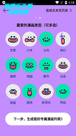 1、打开app,选择最爱的漫画类型;