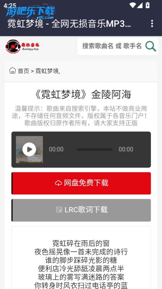 双播放模式:支持在线实时收听与离线播放,搭配网盘免费下载功能,既节省本地内存,又能满足无网络听歌需求。