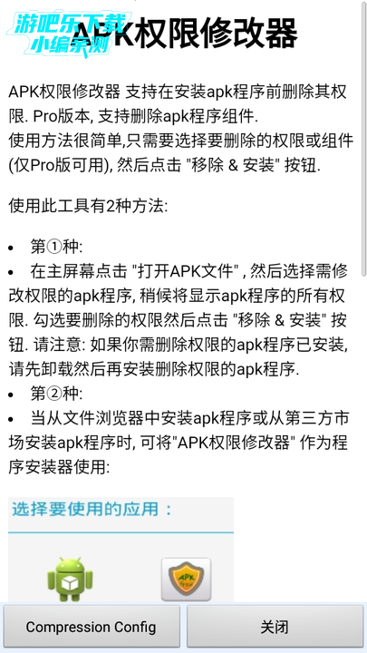 当从文件浏览器中安装apk程序或从第三方市场安装apk程序时, 可将"APK权限修改器" 作为程序安装器使用: