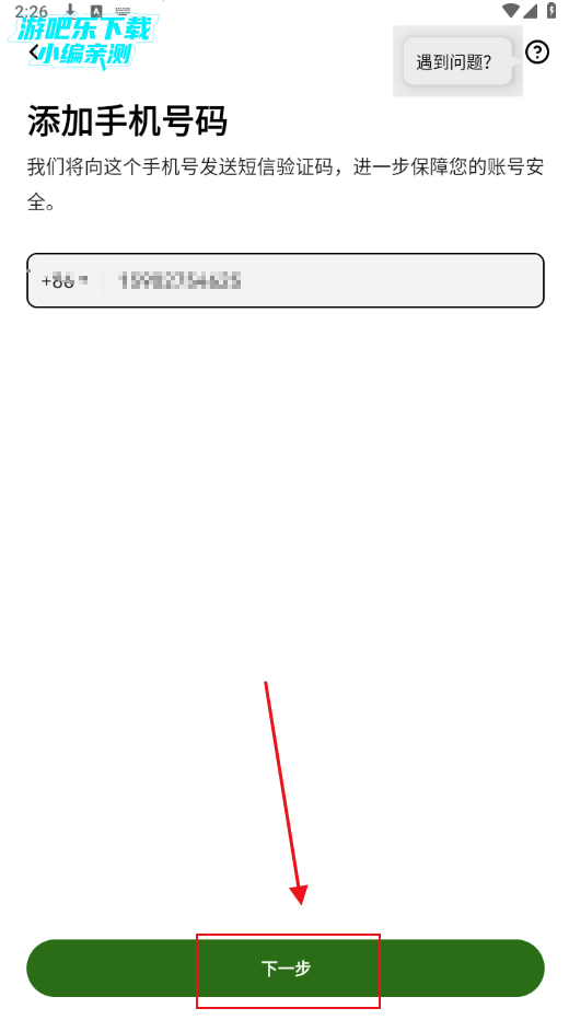 8、需要绑定手机号进行验证,输入手机号后点击【下一步】,