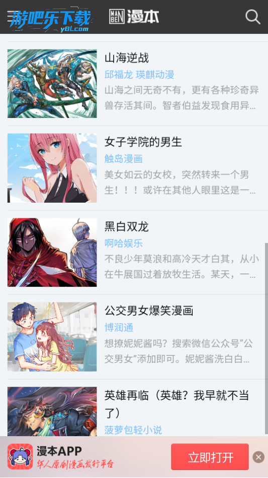 有什么漫画软件是全部免费的?有什么漫画软件看漫画是新人不花钱的?小编为用户推荐几款不错的漫画软件给用户,同时这几款也是十分不错的,漫画免费下载,而且都是优质漫画哦,不断更不停更,如果是个漫画迷,那么就来试试吧。