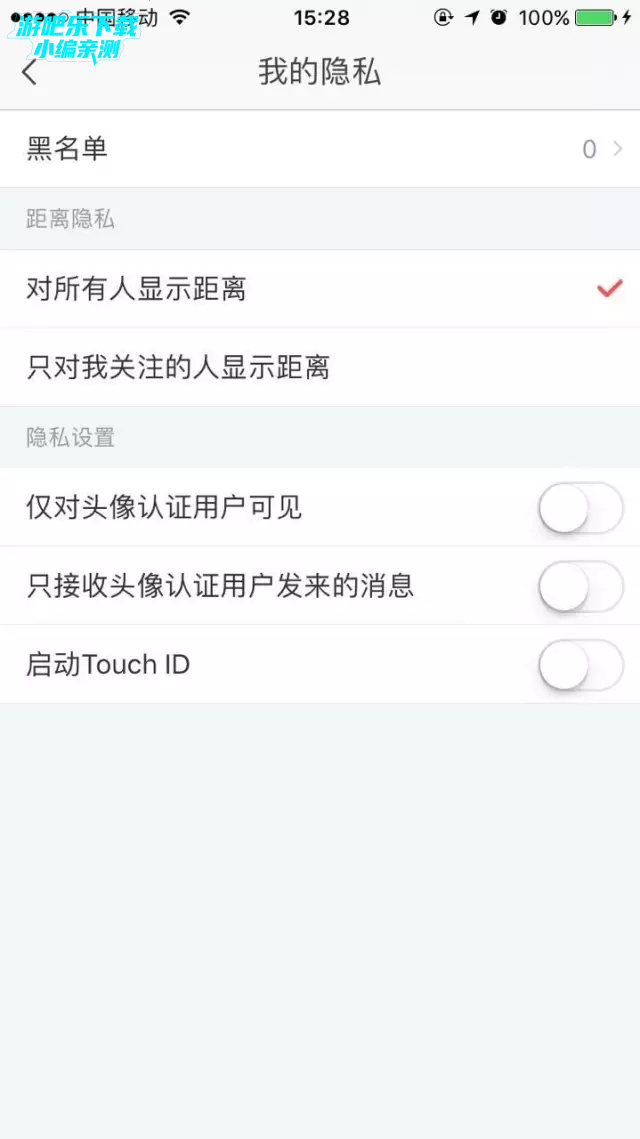 3、在隐私设置里面,还可以设置距离隐私,可以将距离信息只对关注的人开放;