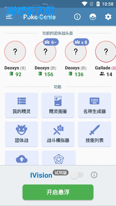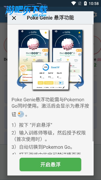 1、在手机上打开Poke Genie软件,在主界面点击“开启悬浮”按钮。