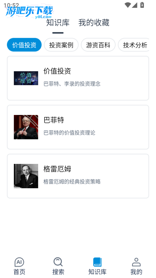 点击知识库,有不同的投资知识可以查看