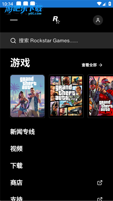 打开App后,首先来到 首页。在这里,你可以自由浏览R星旗下游戏的各种资讯,比如《GTA》《荒野大镖客》的最新更新内容、玩法介绍、预告片等。信息丰富,让你第一时间掌握游戏动态。