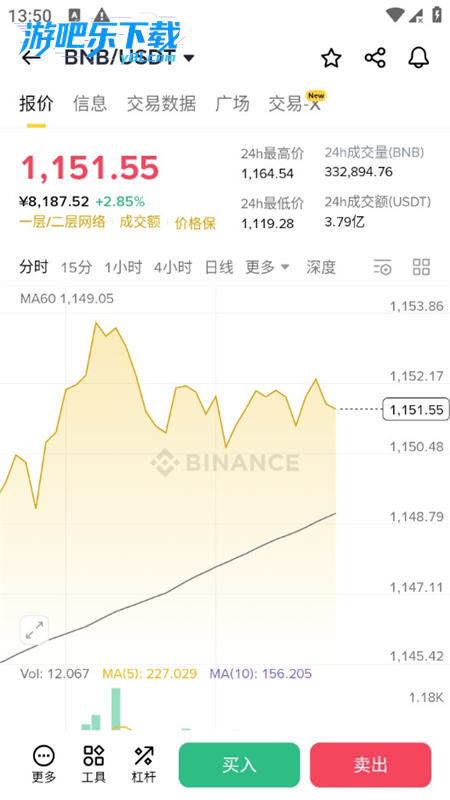 以USDT为例:打开binanceAPP首页,点击【买币】—【快捷买卖】—【出售】—输入【卖出数量】—【出售USDT】。