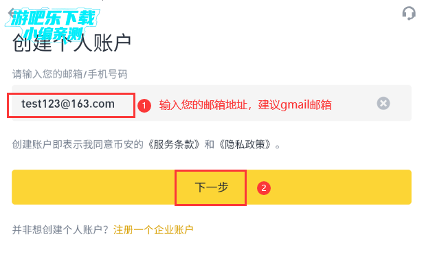阅读并同意《服务条款》与《隐私政策》,然后点击【创建个人账户】。
