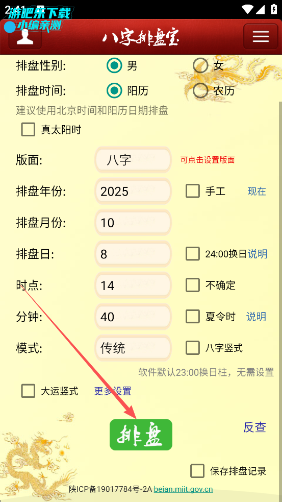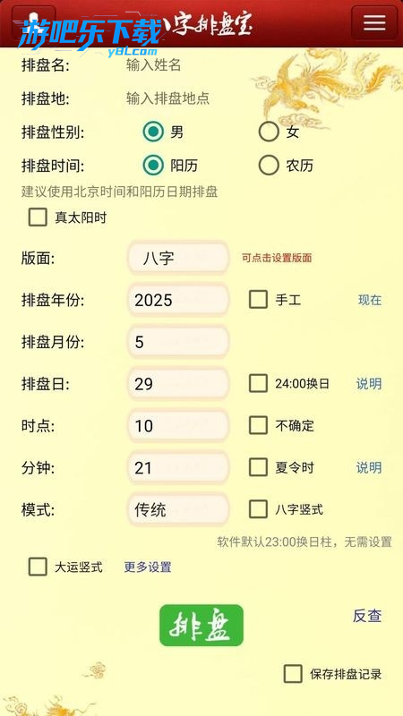 排盘信息可自行选择是否保存,方便记录每次排盘情况,在应用中可便捷查看。