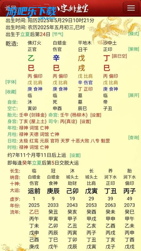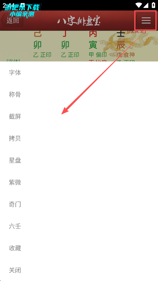 3、你还可以点击右上角菜单来查看其他的命理信息