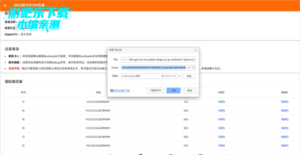 2、打开这个网址https://magiskcn.com/roms.html,找到和手机系统版本一致的系统包,复制下载链接