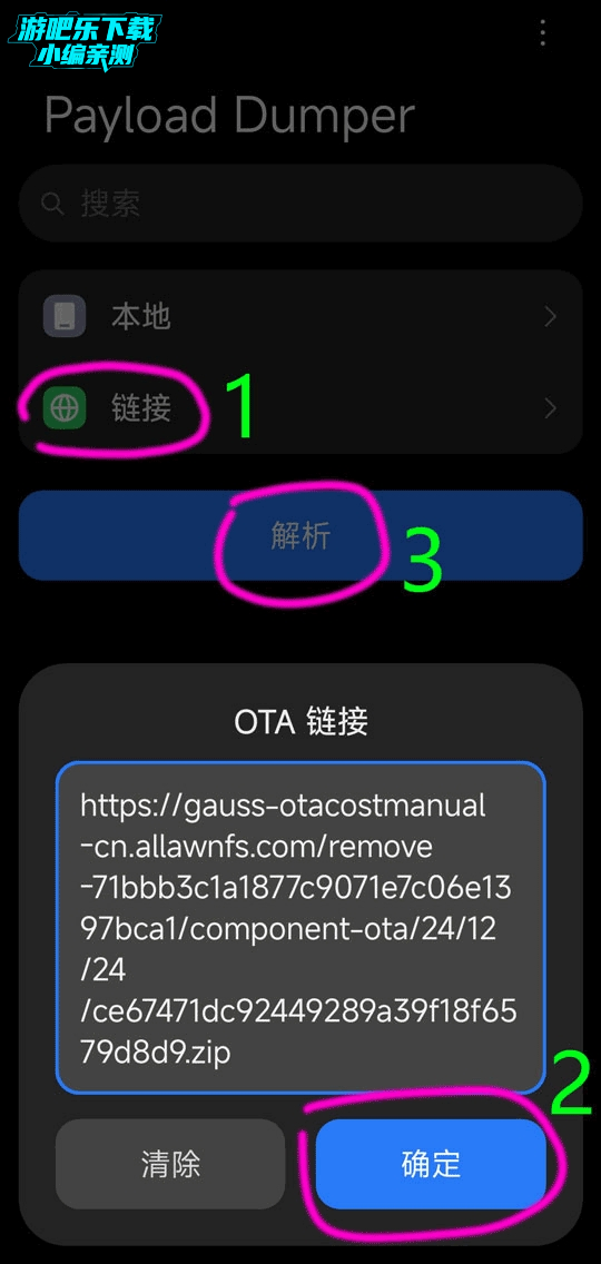 OTA包解包:用户可以输入OTA更新包的链接,Payload Dumper将自动下载并解包包中的payload数据,帮助用户提取所需文件。
