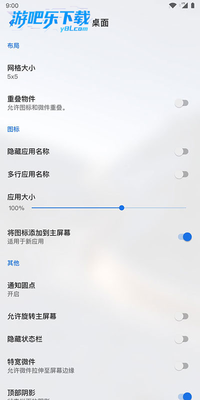 图标与网格:支持自定义图标包、图标形状、大小及网格布局,用户可自由调整桌面密度与视觉风格。