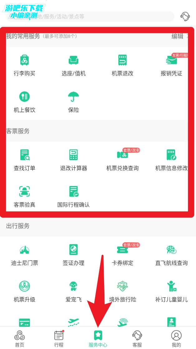 4. 在服务中心中还能找到“选座/值机”“报销凭证”等功能,可自助完成选座与凭证下载等流程。