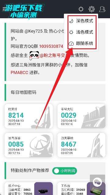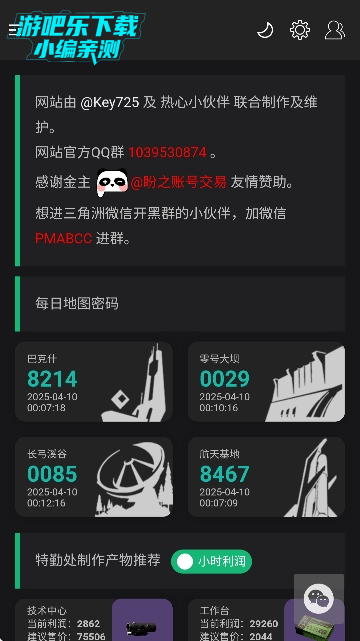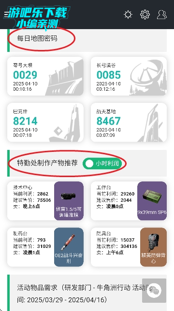 3、例如我们可以查看每日地图密码,或者特勤处制作产物推荐,