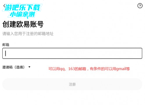 4、输入 邮箱,什么邮箱都可以,长期稳定的、可以正常登陆的,后续提现需要用到、
