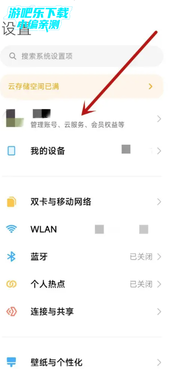 2.在账号页面,点击查找设备。