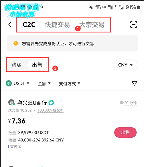 2.找到 C2C交易 点击进入就可以看到 快捷交易 大宗买卖 下面有购买 出售根据要求填入即可。