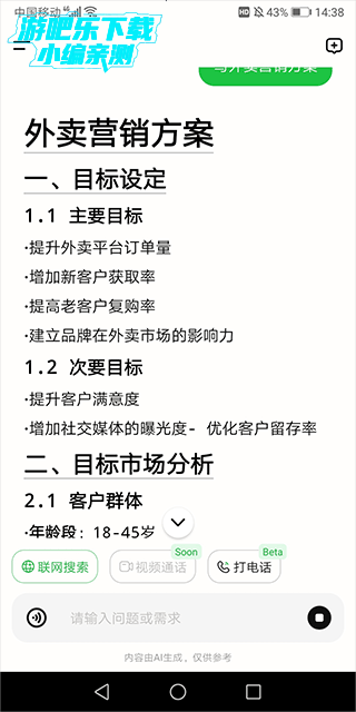 2、用它来写外卖营销方案可以精准对接美团外卖平台,让方案更加可靠