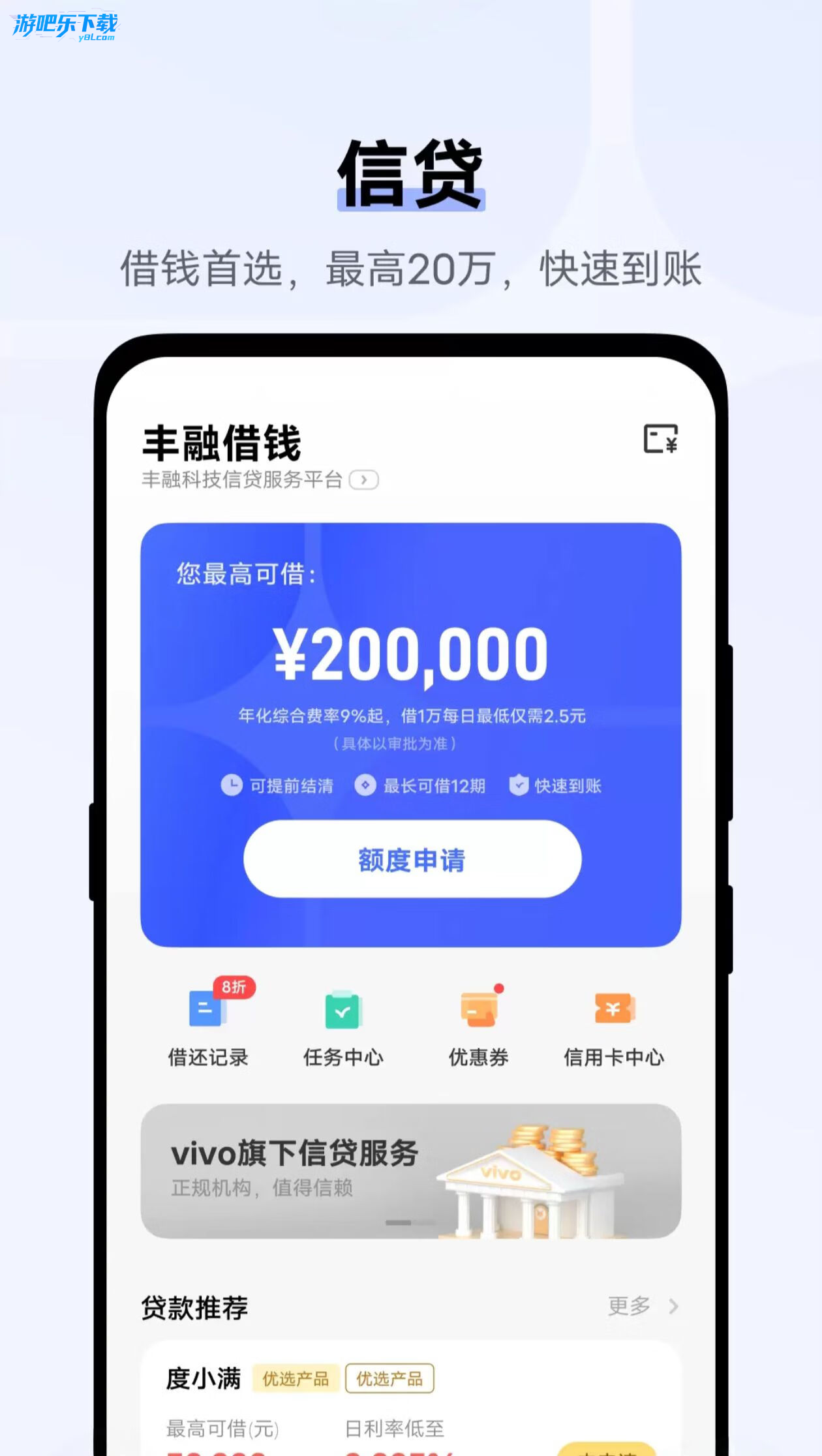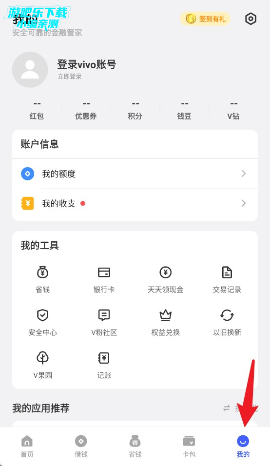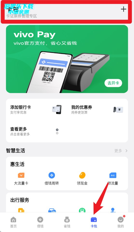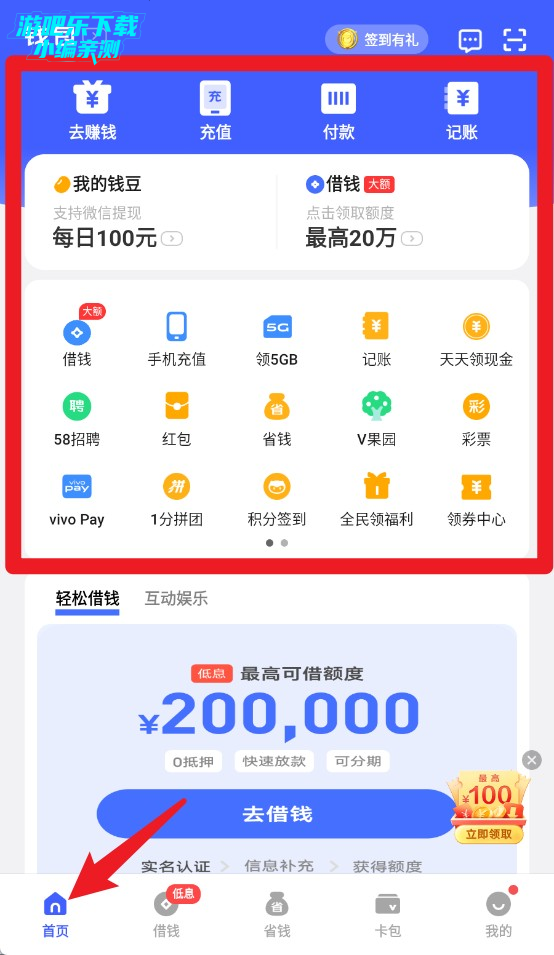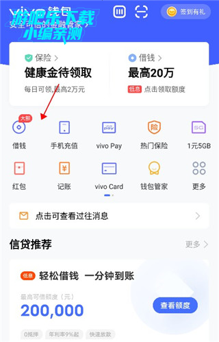 1、用户本站下载打开vivo钱包App,首页的借钱服务;