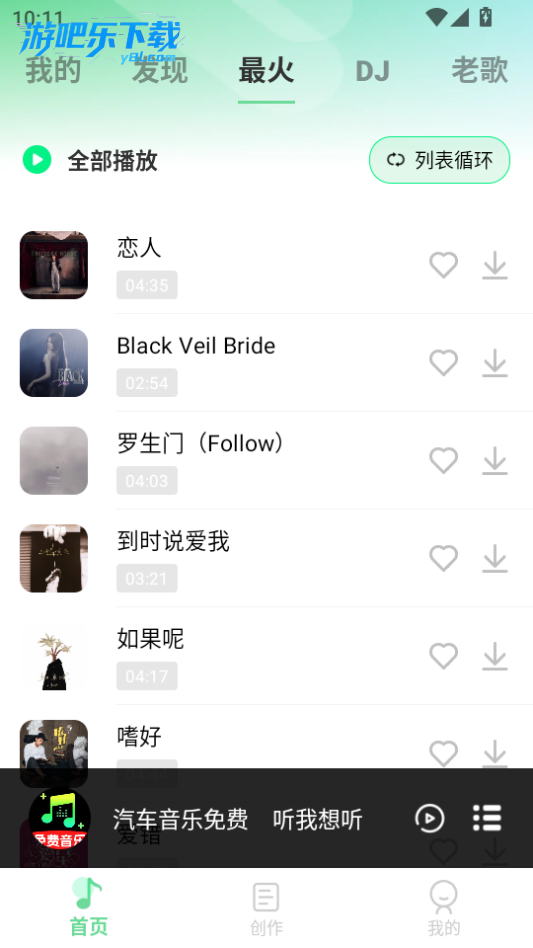 本站下载进入汽车音乐免费软件,这里为你推荐了超多的歌曲可以选择