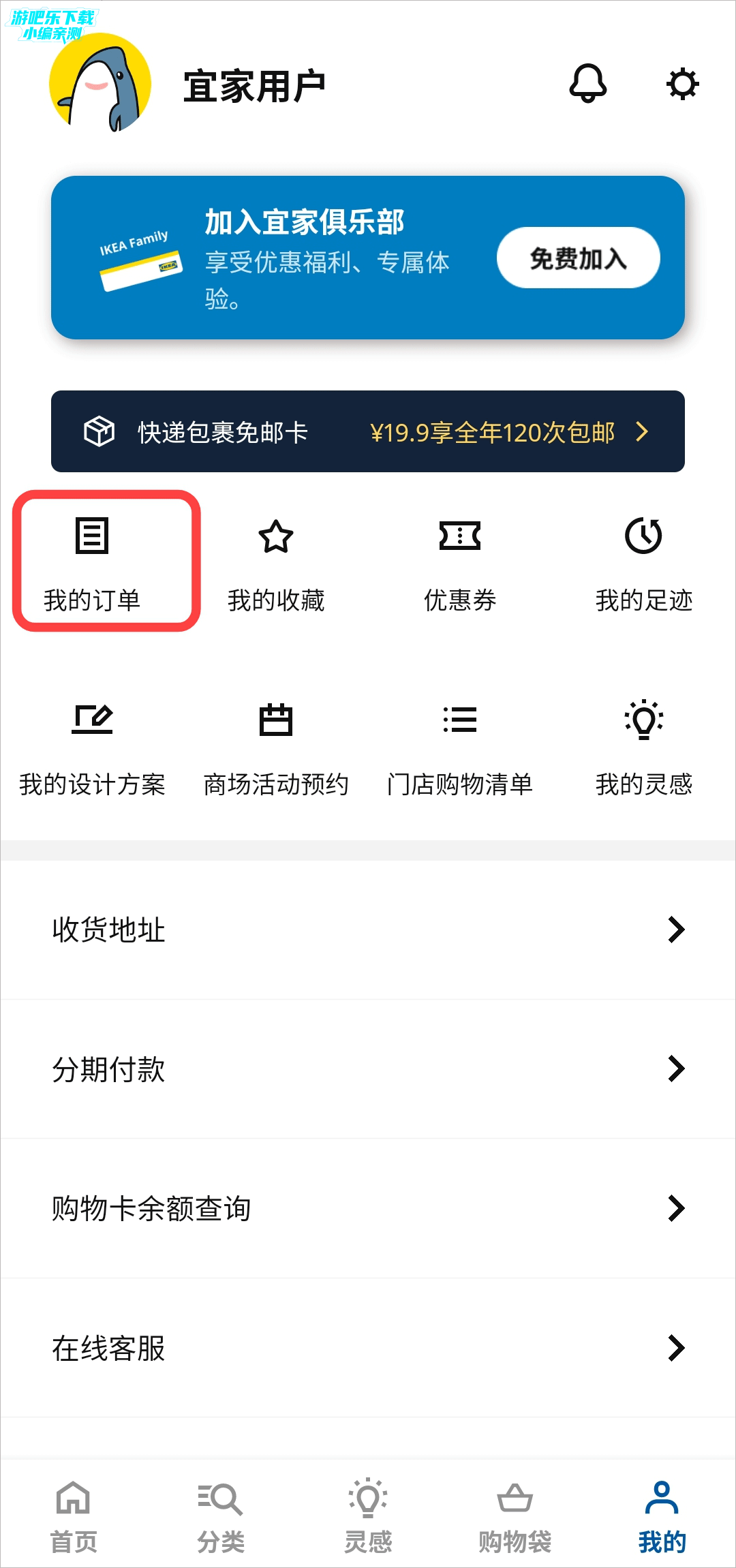 1、进入宜家家居官方网上商城app,在我的界面点击“我的订单”