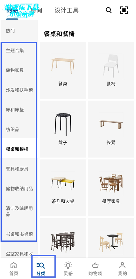 1、下载并打开IKEA宜家家居app,在分类中选择类别。