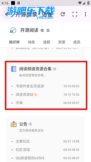 4、点击使用说明,往下滑找到阅读频道资源合集。