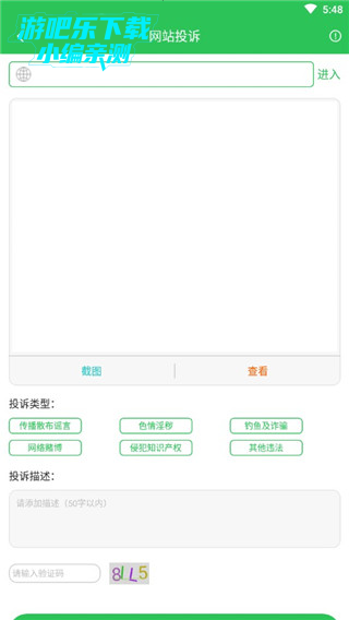 2、点击网站投诉,可以输入违规网站链接,进入后进行截图,选择违规类型,添加描述即可提交