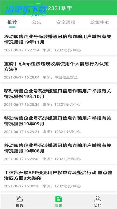 4、点击资讯,可以查看各类官方资讯,公告和政策