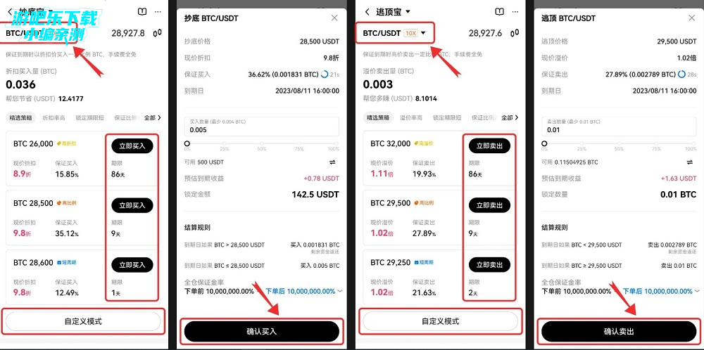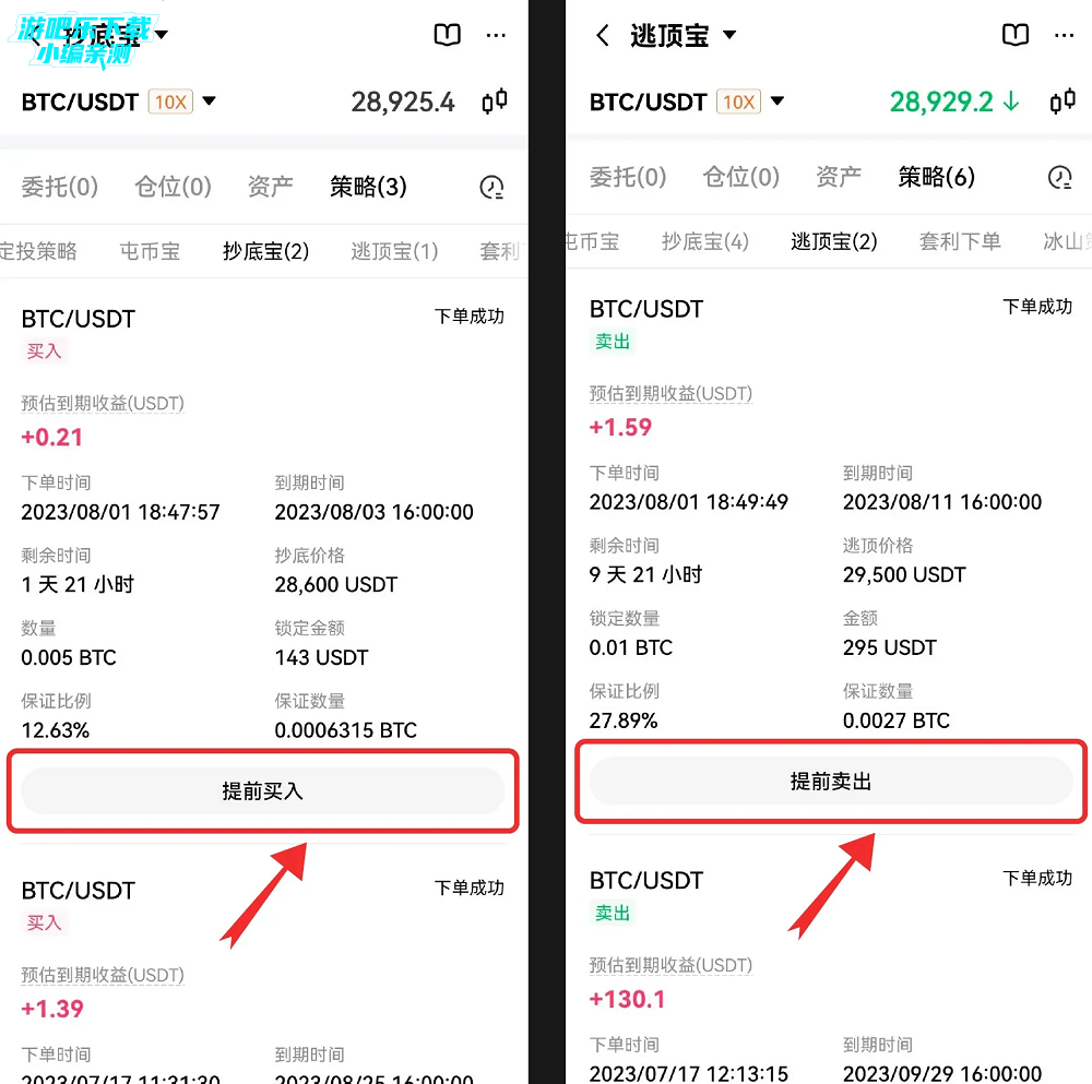 3)提前买入--提前卖出在抄底宝和逃顶宝交割前(下单后24小时,交割前24小时不可操作),允许用户以一定的报价提前完成锁定资金的立即买入或立即卖出(报价由实时行情和平仓费用决定)。