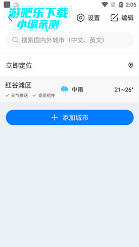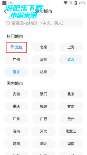 3、进入页面后,可以选择直接定位自身所在城市,也可以手动添加。