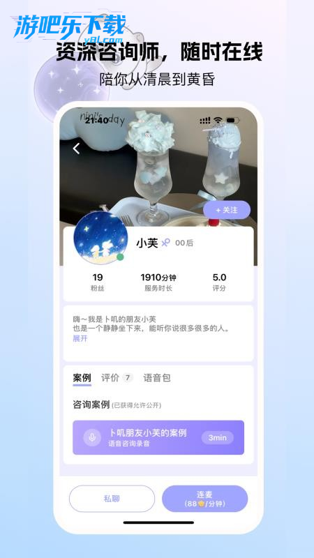 - 作为一个有轻社交需求的人,卜叽的兴趣聚合场景非常吸引我。可以找到很多有相似经历的朋友,一起分享成长感悟。内容共创的氛围也很积极,大家都很愿意分享自己的体验,互相支持。咨询师的连麦互动也很专业,给了我很多帮助。