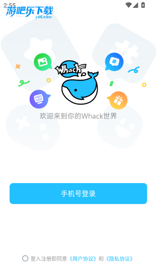 本站下载进入Whack游戏社区软件,点击手机号登录