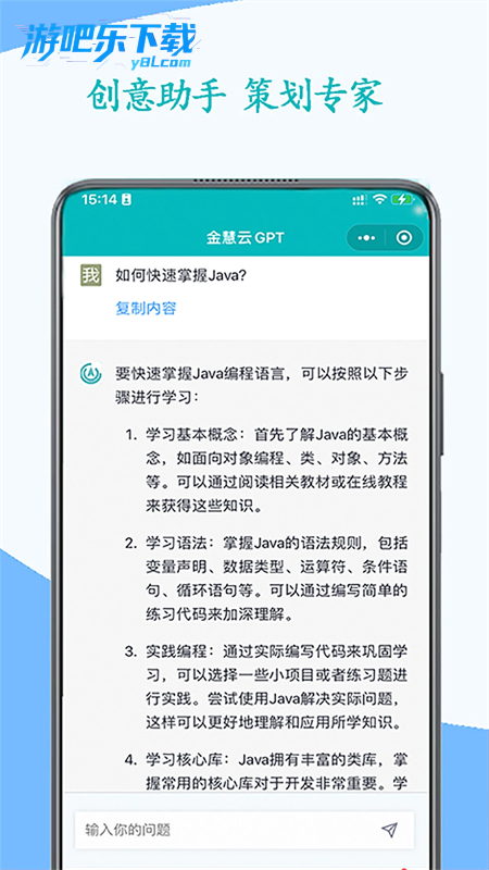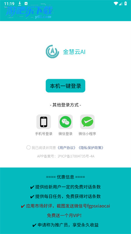 - 金慧云AI软件的下载安装流程非常便捷,从游吧乐网一键搞定,打开后界面直观,各种AI功能排列清晰,点击即用,对于我这种追求效率的用户来说简直是福音。登录方式也超灵活,微信、手机号都能搞定,快速进入智能体验,省去了不少繁琐步骤。极力推荐!