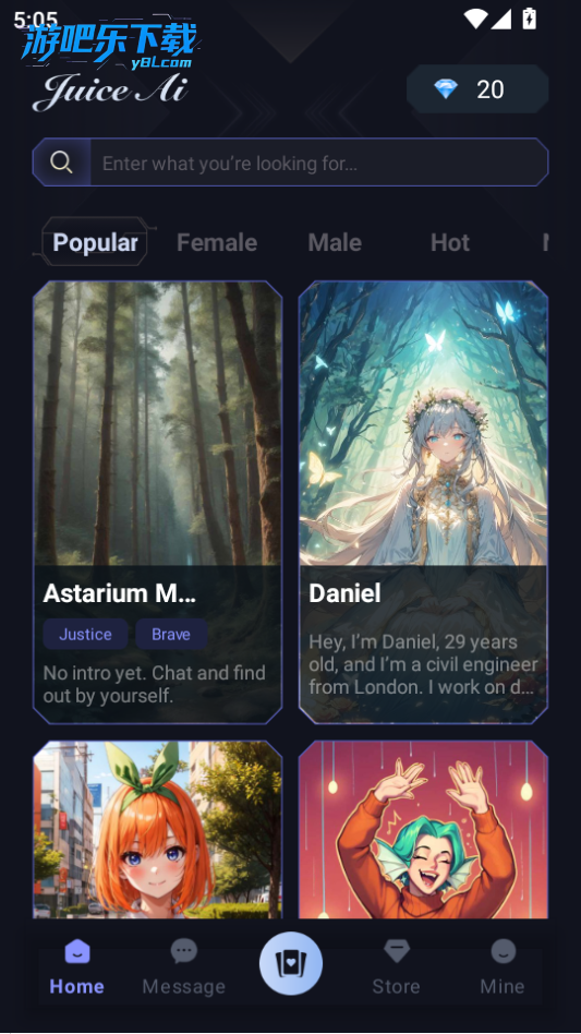- JuiceAI真是动漫爱好者的福音!角色丰富,互动性强,仿佛真的在和喜欢的角色聊天一样。剧情模式也很吸引人,期待更多角色和剧情更新!