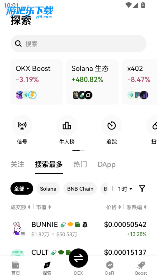 点击上方搜索,输入关键词可以找到想要的加密货