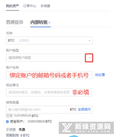 3.如果对方账户是OKEx的注册账户或者合作交易所账户,您可以选择内部转账的方式提币,点击账户类型旁边的下拉菜单,选择OKEx或者其他合作交易平台,输入账户名称和转账数量,点击提交。