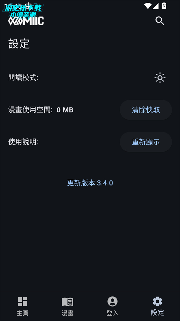 3、最后我们也可以点击右下角“设定”进入到设置页面,从而对阅读模式,漫画使用空间,使用说明等参数进行设置。