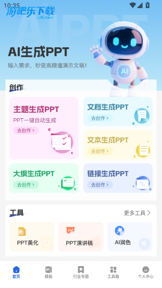 下载进入AI生成PPT软件,这里有超多的功能可以选择使用