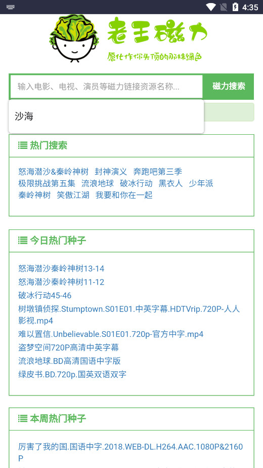 - 跨平台支持太实用了!手机、电脑都能无缝使用老王磁力,聚合全网资源不用切换多个软件。搜索结果可按种子数量排序,找热门资源高效又精准,新手也能快速上手,推荐给所有需要磁力搜索的小伙伴~