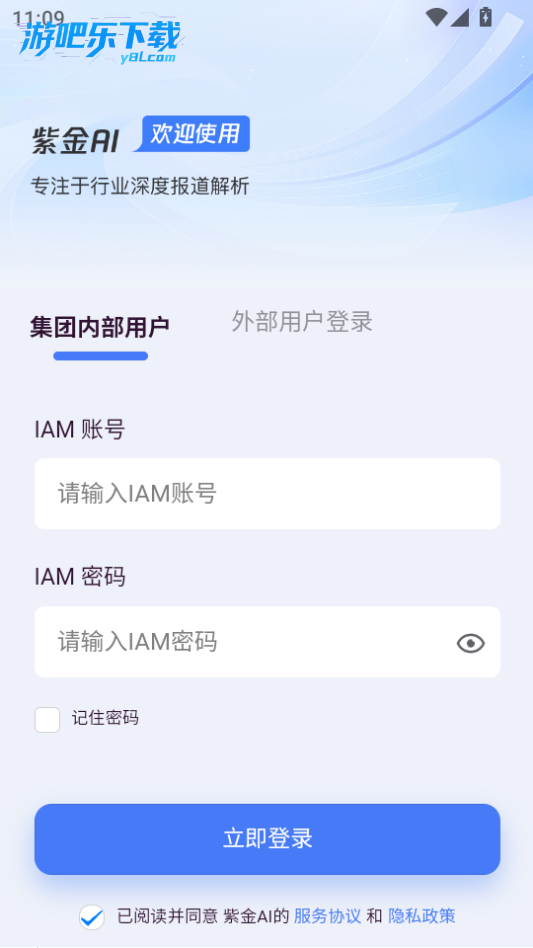 下载进入紫金AI软件,可以使用内部或者是外部用户登录