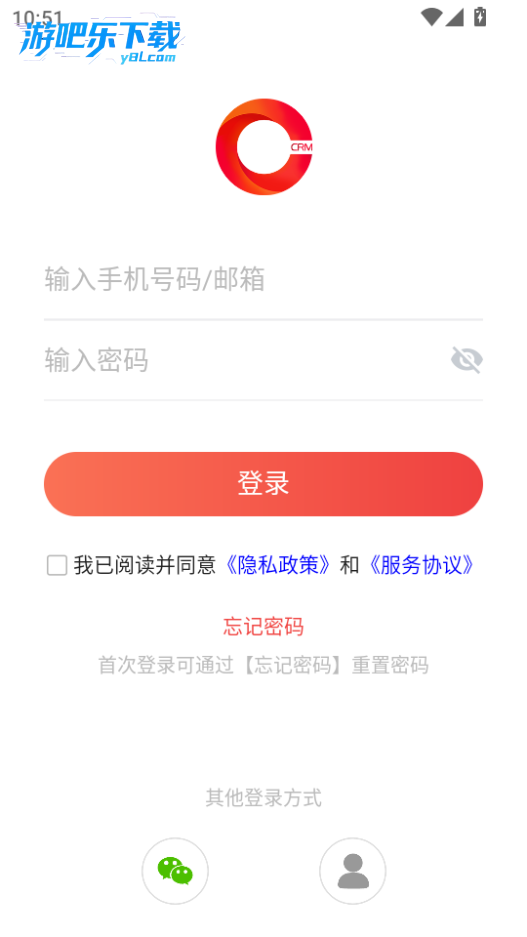 下载进入红圈CRM+软件,输入手机号和密码即可登录